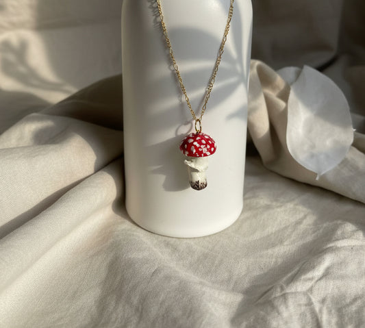 Fly Agaric Mossy Quartz Mushroom Necklace
