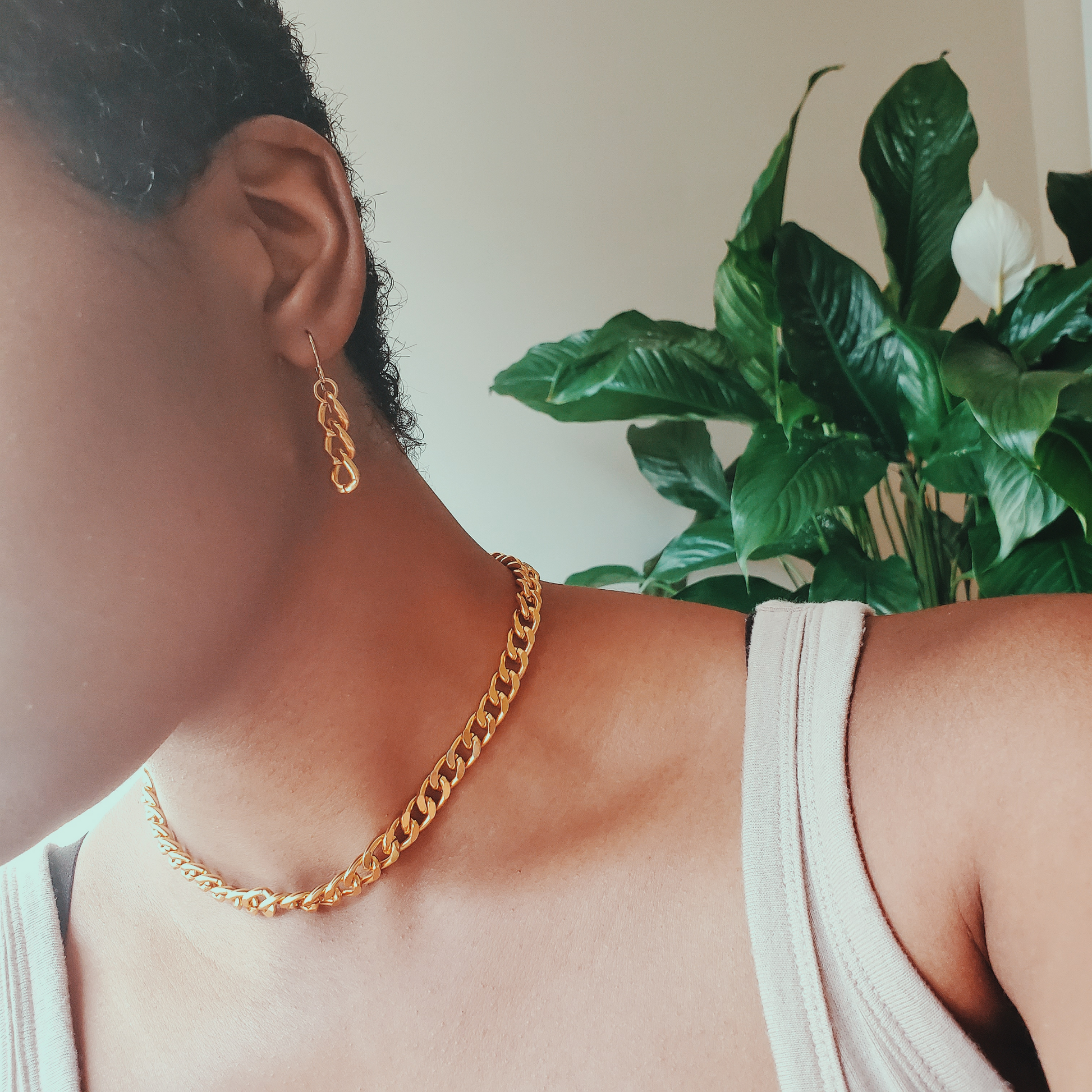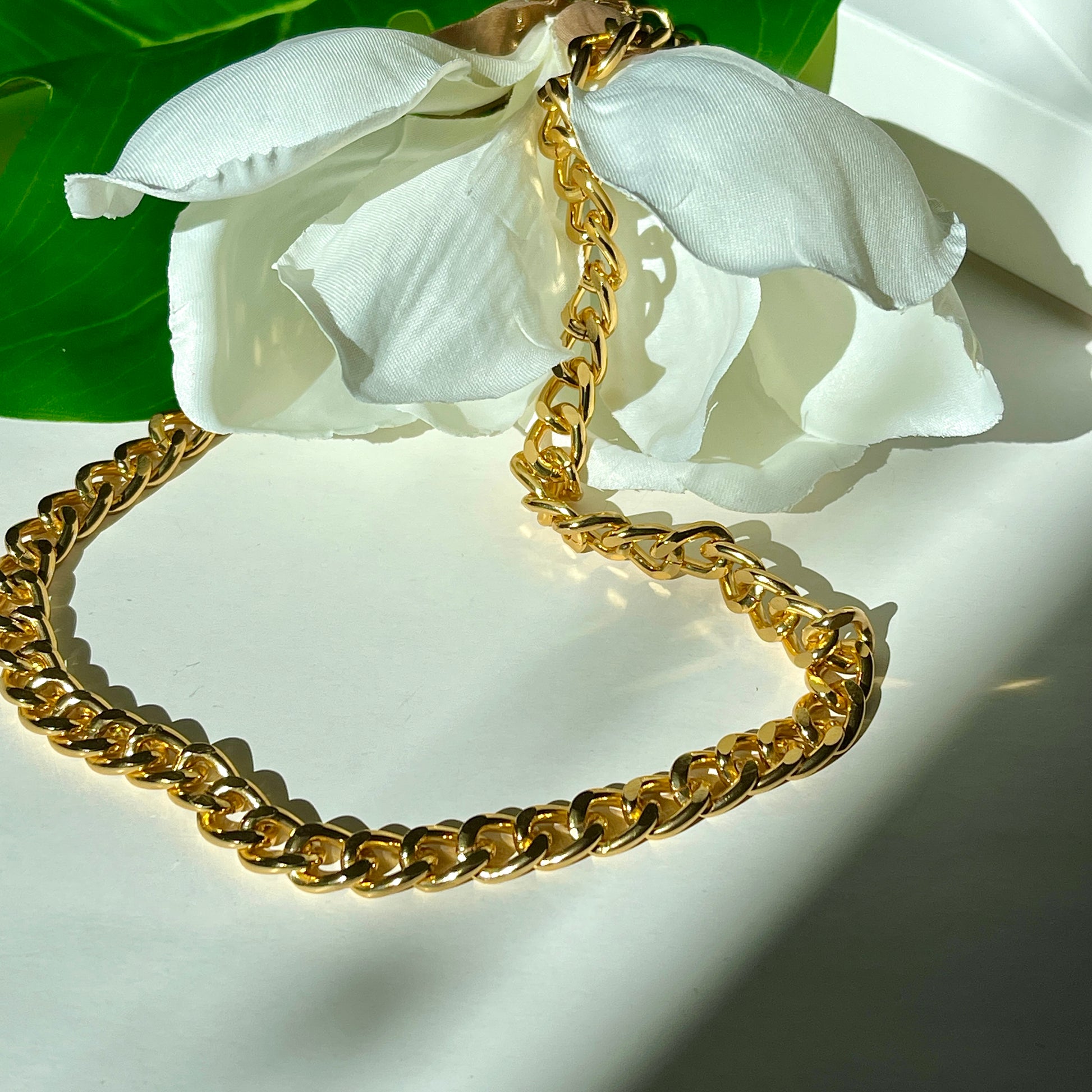 Elevate your style with our Bold Curb Choker, a symbol of timeless sophistication. This exquisite piece features a luxurious 18k gold-dipped Cuban link chain, meticulously crafted to enhance any outfit, from casual to formal. Whether worn for special occasions or as an everyday statement, this choker exudes elegance and allure.